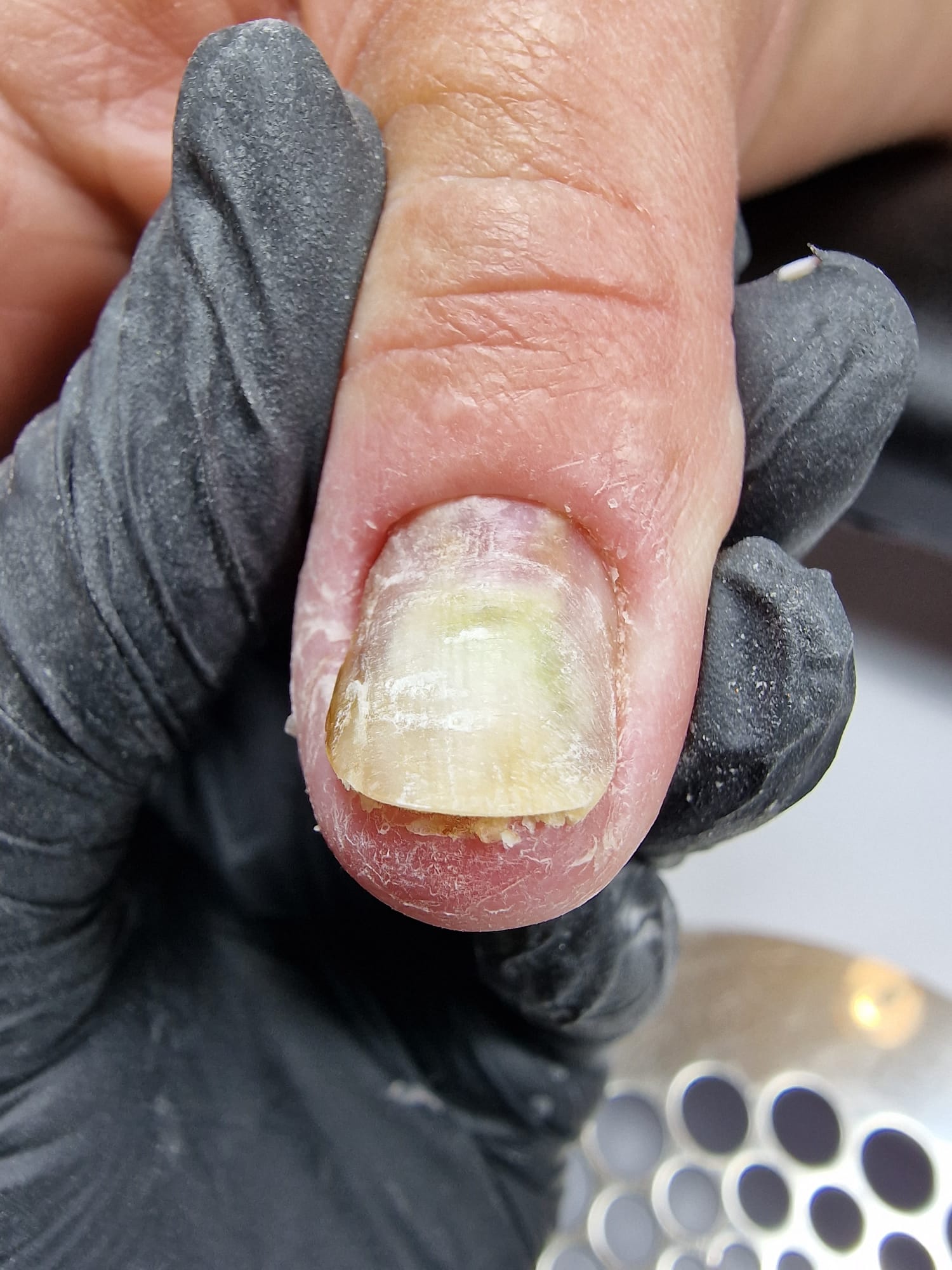 Cu toate că în salon noi nu folosim primer pe bază de acid, primim cliente care si-au distrus pur și simplu unghiile datorită acestor produse.Însă există și cliente care au diverse afecțiuni pentru care urmează tratament medicamentos, care provoacă modificări la nivelul unghiei: pigmentări, depigmentări, exfoliere sau fragilitate excesivă până la onicoliză. De aceea recomand clientelor să fie deschise și să nu ascundă faptul că urmează tratament sau suferă de o afecțiune cronică, deoarece pot experimenta neplăceri la nivelul unghiei datorate interacțiunii dintre oja semipermanentă sau gel, cu unghia sensibilizată de tratamentul curent, sau chiar de afecțiunea în sine. În aceste cazuri recomand manichiura clasică și îngrijirea adecvată a unghiilor sensibile.
