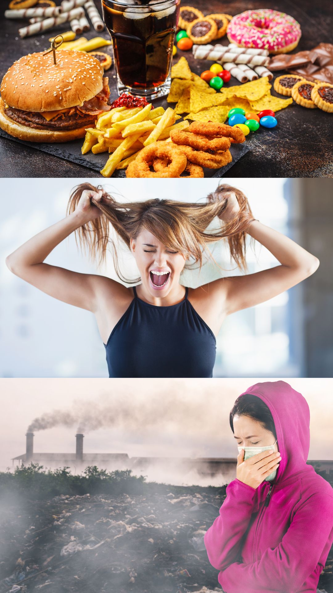 În timpul stresului, glandele suprarenale produc hormonul cortizol. Dar glandele suprarenale produc și hormoni androgeni. Astfel că o glandă suprarenală stimulată de stres, va produce cortizol ce stimulează producția de hormoni androgeni, ceea ce va putea genera acnee, sau va putea agrava o acnee deja prezentă. În plus, stresul promovează o inflamație generală la nivelul organismului, inclusiv la nivelul pielii, afectând și bariera cutanată, in plus, persoanele foarte stresate au tendința să scobească pielea, să se scarpine în exces, nici nu dorm bine și nu fac alegeri alimentare sănătoase. Toate acestea înseamnă o inflamație în plus!