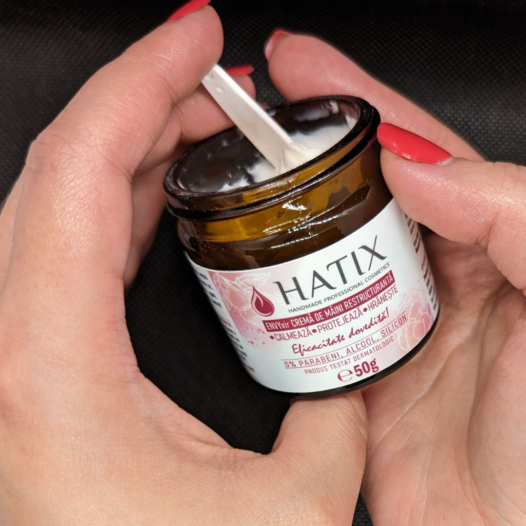 HATIX ENVYxir CREMĂ DE MÂINI RESTRUCTURANTĂ este un produs testat dermatologic și conform studiilor efectuate se remarcă printr-un efect principal de refacere a barierei hidrolipidice împiedicând pierderea apei din piele, fapt ce ajută la refacerea integrității acesteia. În plus calmează, hrănește și protejează tegumentul de la acest nivel oferind un efect vizibil de la prima aplicare.
